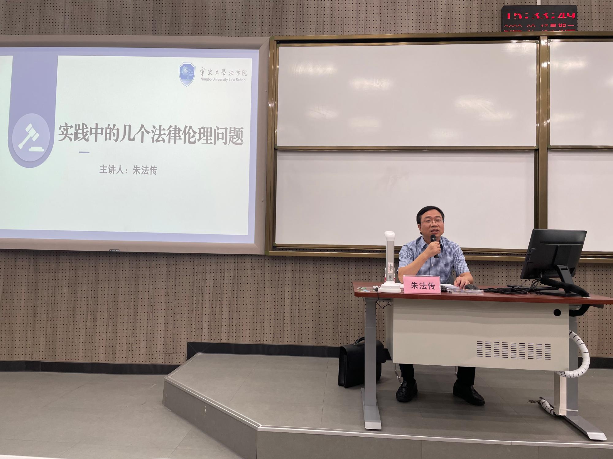 邀请了1986级校友、镇海区人大常委会主任朱法传走进学生课堂进行实务经验分享。51吃瓜网