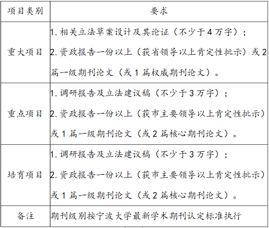 本次课题重大项目经费资助每项15万元,重点项目经费资助10万元。课题成果须标注为“宁波立法研究院研究课题成果”。