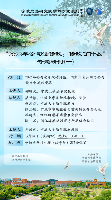 讲座题目:2023年公司法修改的价值、国家出资公司与公司设立制度的变革
