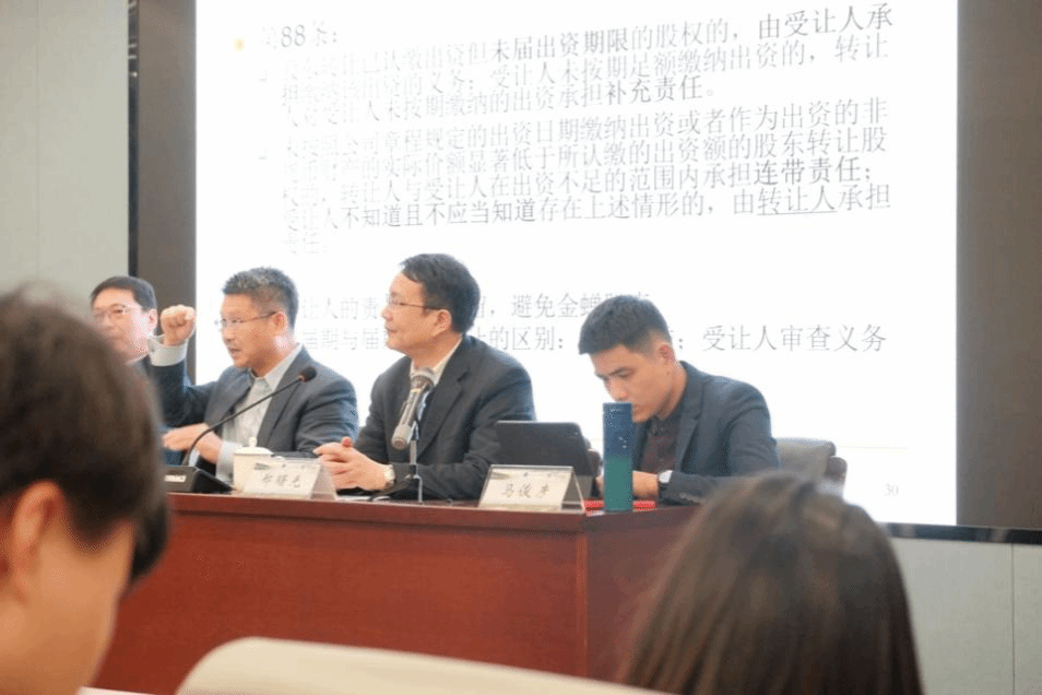 与谈人马俊彦副教授表示公司法修改后他最大的感受有两点,一个是新的公司法增加了颗粒感,落实了责任主体机制;第二个是新法对于债权人保护的全面倾斜,突破了代理理论下董事应当承担的受托义务。随后,马老师从职工代表制度、新公司法中实缴制度设计、股东名册规定、忠实义务和勤勉义务、证券法的体系兼容问题等六个角度出发探讨立法者的设计与实效中可能产生的偏移,表示希望与各位专家教授和听讲者共同讨论公司法制度设计。