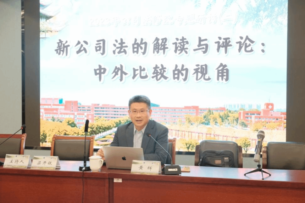 研讨会开始,主讲人黄辉教授围绕本次研讨主题,从中外比较法的视角对新公司法予以相应的解读与评论。他从本次公司法修订的背景引入主题,重点围绕新公司法修订重点、公司资本制度、股权转让规则、公司治理结构以及董事义务与责任五个方面进行详细阐述。黄教授表示本次公司法修订既突显中国特色,又吸收境外经验,经过立法机关的四轮审议,是一次较为成功的修法活动。他结合英美公司法、德国公司法、我国香港地区与台湾地区公司法的相关规定,比较分析了2023年修订的公司法所确立的资本制度、债权人保护制度、股东出资责任制度、股东失权制度、股权转让规则等基本特点。黄教授同时引出几个讨论的问题,如针对2013年推行的出资认缴制度,本次公司法在修订审议稿三审之前以资本催缴与股东失权制度为重点以解决认缴出资所产生的问题,但第三次审议时又加入了5年期限实缴制,将认缴制与实缴制嵌合在一起,在实施中是否会湮灭认缴制带来的营商便利,还会带来很大的转换成本,以及虚假出资验资等以前实缴制下的问题会重出江湖,可以作些讨论。另外,2023公司法将股东未届期缴纳的出资经过丧失股权、依法转让、减资并注销该股权程序后,在六个月内未转让或者注销的,由公司其他股东按照其出资比例足额缴纳相应出资,这一规定是否会给其他股东挖了个“大坑”,突破有限责任原则,客观上增加投资者的投资风险,这些也应当引起学界与实务界的讨论与探索。