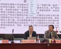 最后,陈鹿林主任提到,王教授所谈的“对行贿罪予以从严查处”的观点对自己很有启发。在司法实践中,我们也不能“就条文看条文”,应当注重司法实践,对条文进行实质解释。