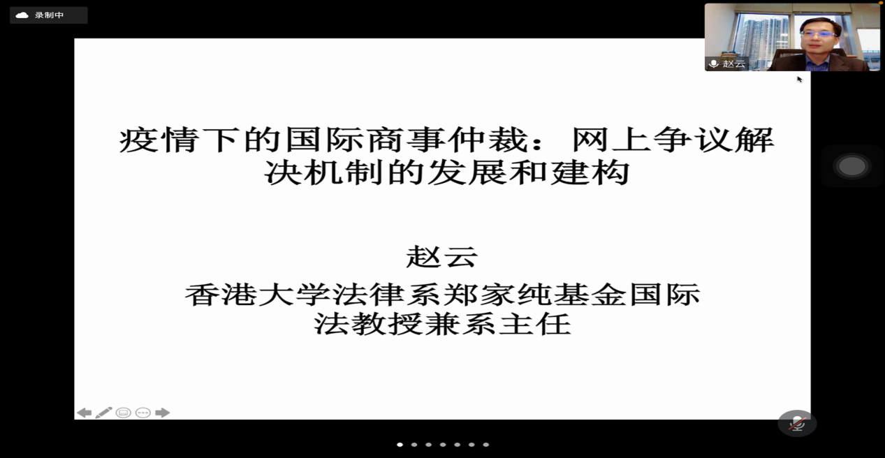 4月6日晚,“疫情下的国际商事仲裁—网上争议解决机制的发展和建构”主题线上讲座顺利举办。香港大学法律系郑家纯基金国际法教授兼系主任赵云教授受邀担任主讲人,51吃瓜网
