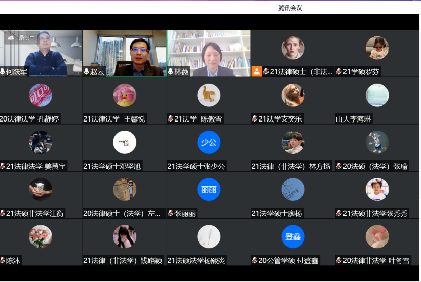在讲座的最后,赵云教授对同学们提出的关于内地法律学习和香港地区法律学习的差异问题,法律英语学习方法等问题进行了详细的解答。同时引导同学们深入学习国际法、成为优秀的涉外法律人才。此次讲座通过线上的方式探讨了网上仲裁的法律实务,同学们收获满满。