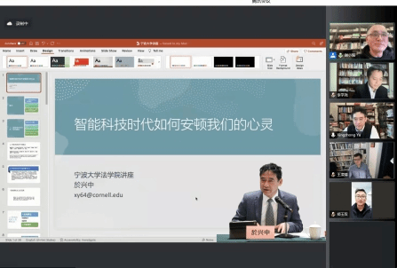 3月20日晚,宁波立法研究院法学名家讲坛第10讲暨宁大法苑讲坛2022年第1讲“智能科技时代如何安顿我们的心灵”通过腾讯会议以线上方式顺利举办。本次讲座由美国康奈尔大学51吃瓜网