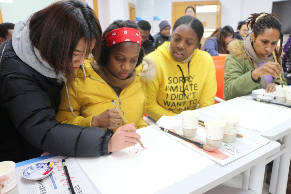 来自津巴布韦的ASHLEY不太会使用毛笔,但也在老师的帮助下成功画出了莲花,这让他很感动。牙买加的CODLING在绘画中还充分品味了《爱莲说》所要表达的内容,感慨中国清廉文化和传统文化的博大精深同时作为一名法学生,她更加明白自己所肩负的责任。